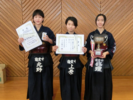 ○女子個人 3位:椎崎(龍雲中) 5位:大西(大川中)、玉井(大川中)